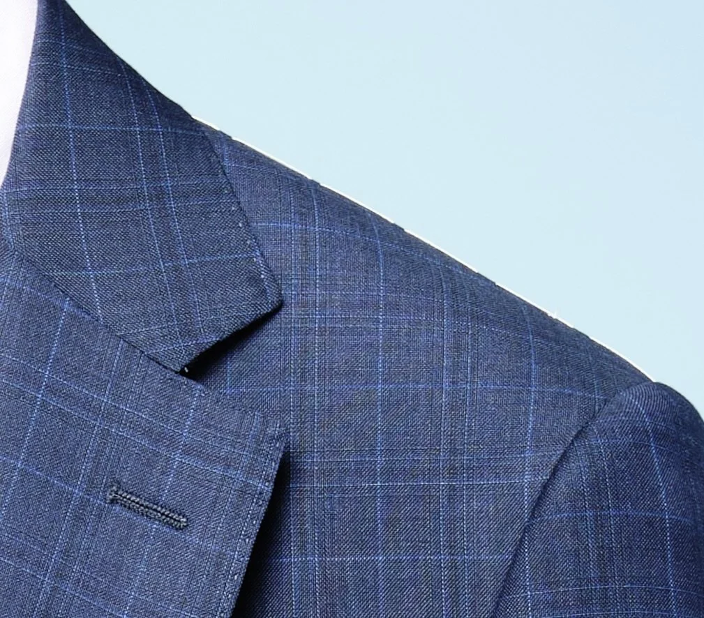 Exclusive regular fit mid blue with blue double overcheck S150s $4995