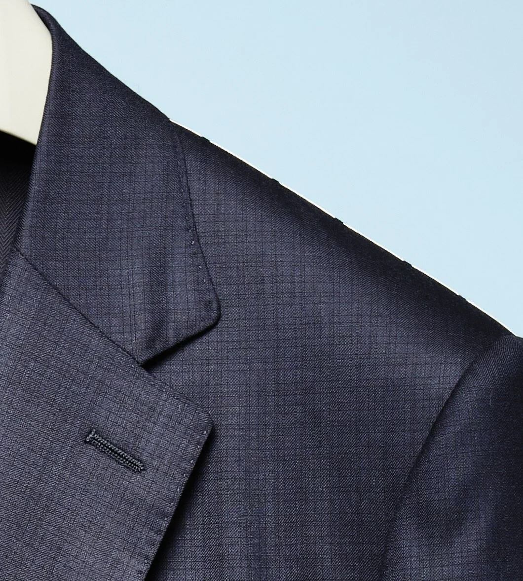 Exclusive Regular fit navy self woven check S170 with 5% silk $5250