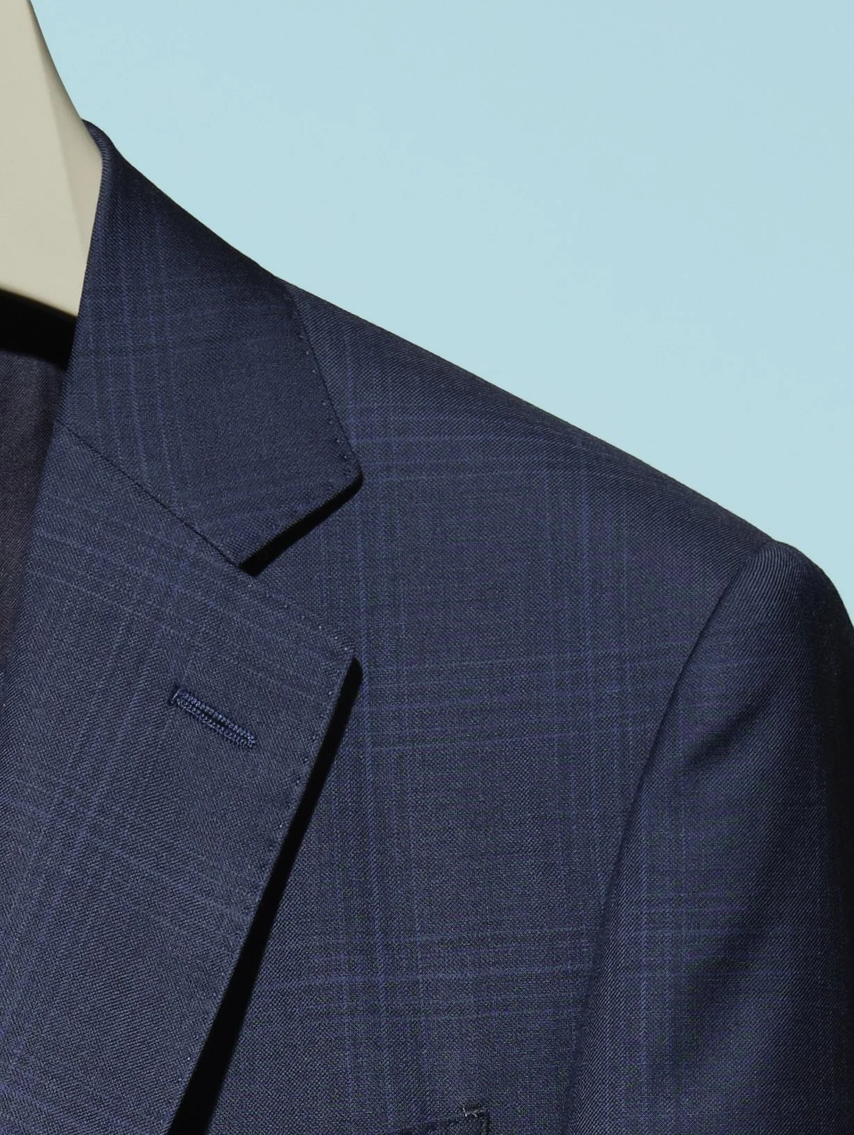 Navy super 130s siena contemporary fit with soft blue overcheck $3795